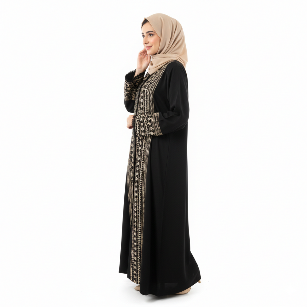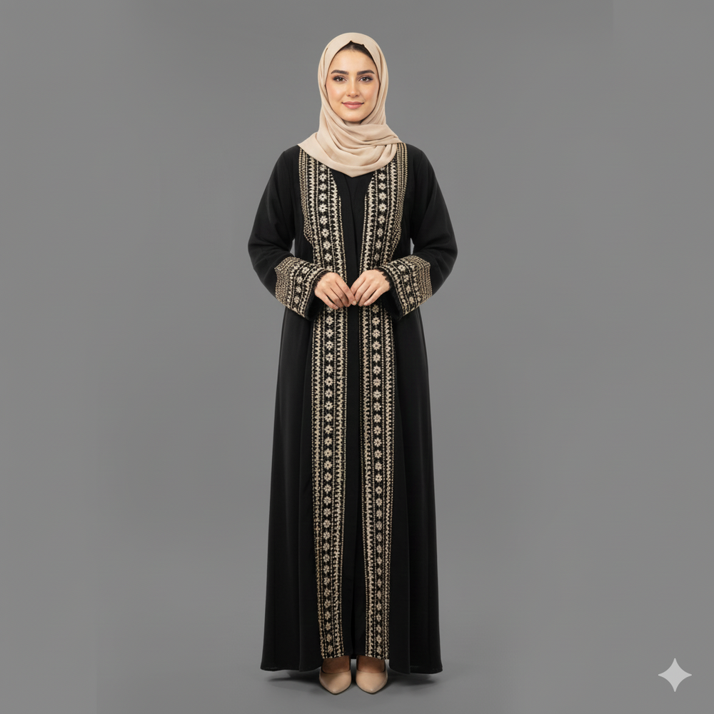 The Alkyara Amani Abaya blends elegance and comfort in one timeless design. Made from soft, flowy fabric with refined pleat detailing, it offers a graceful look perfect for everyday wear or special occasions.