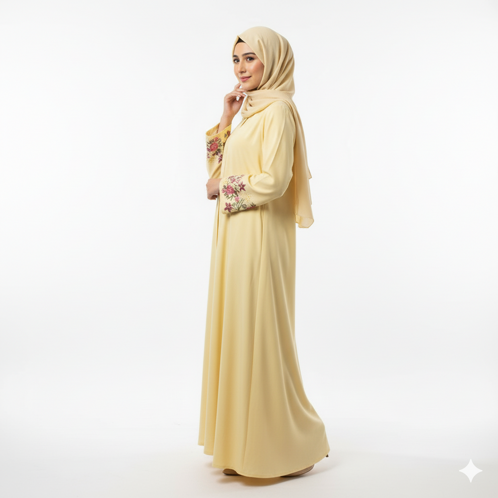 The Alkyara Ayla Abaya blends elegance and comfort in one timeless design. Made from soft, flowy fabric with refined pleat detailing, it offers a graceful look perfect for everyday wear or special occasions.