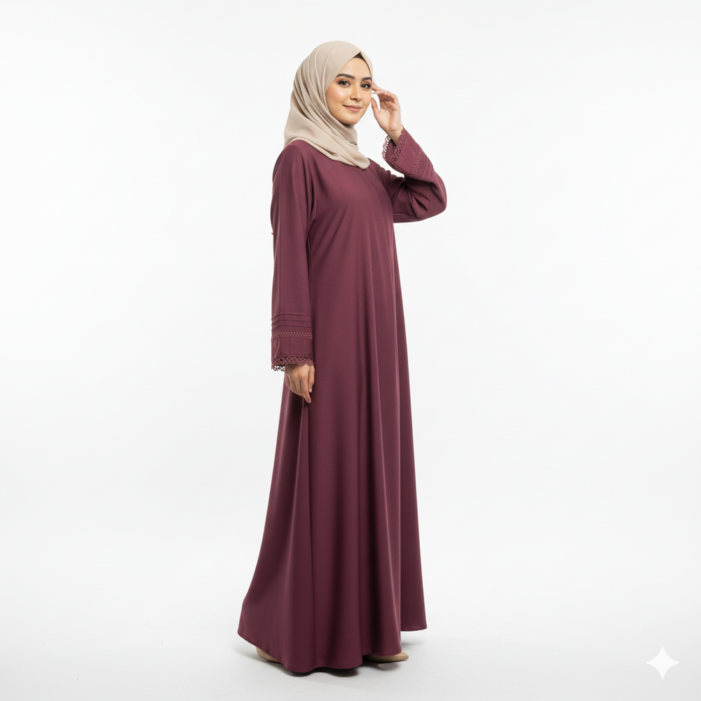 The Alkyara Mariyah Abaya blends elegance and comfort in one timeless design. Made from soft, flowy fabric with refined pleat detailing, it offers a graceful look perfect for everyday wear or special occasions.