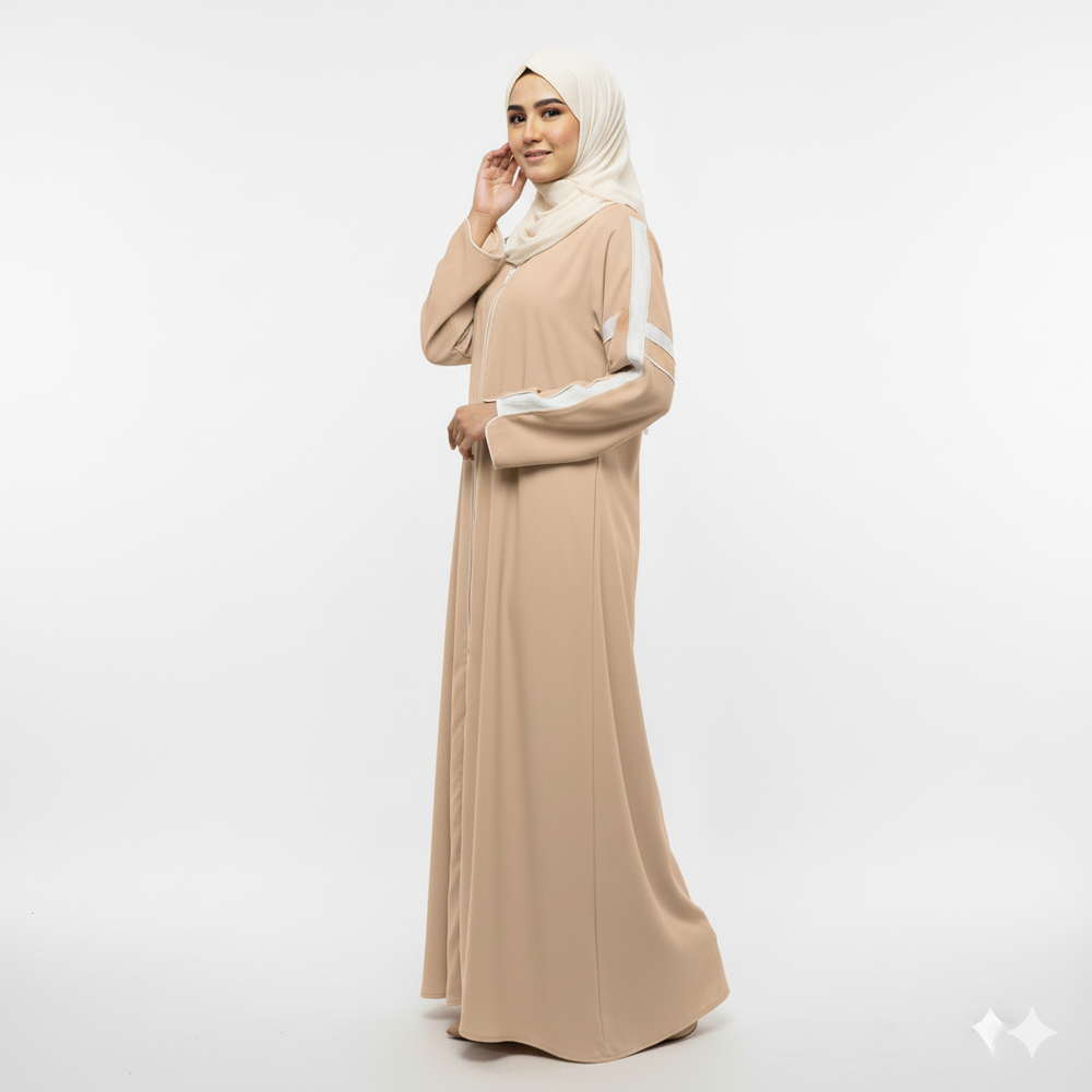 The Alkyara Inaya Abaya blends elegance and comfort in one timeless design. Made from soft, flowy fabric with refined pleat detailing, it offers a graceful look perfect for everyday wear or special occasions.